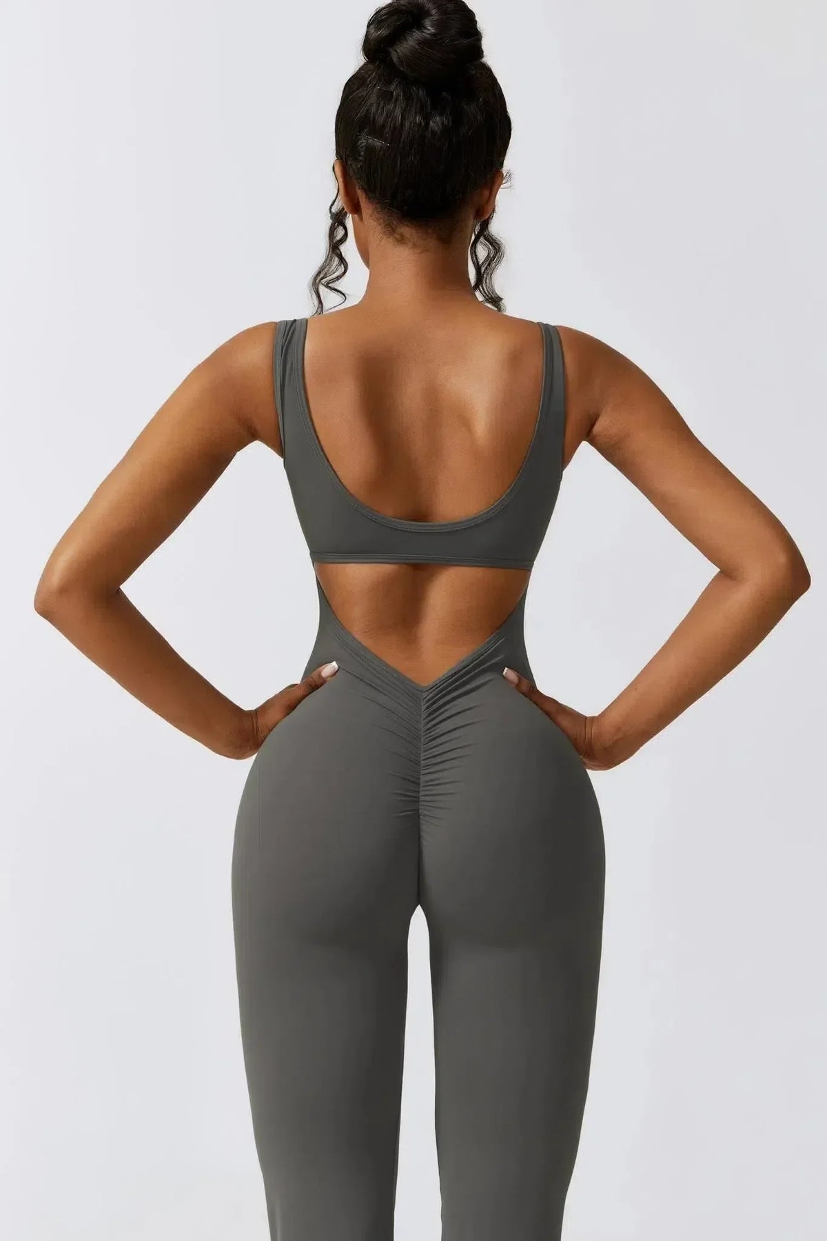 Elevate your activewear with the Circe Sleeveless Activewear Jumpsuit, the perfect balance of contemporary style and high-performance functionality. Designed with a sleeveless silhouette, chic open-back detail, and scrunch back to accentuate your curves, this jumpsuit delivers a flattering fit without compromising on comfort.